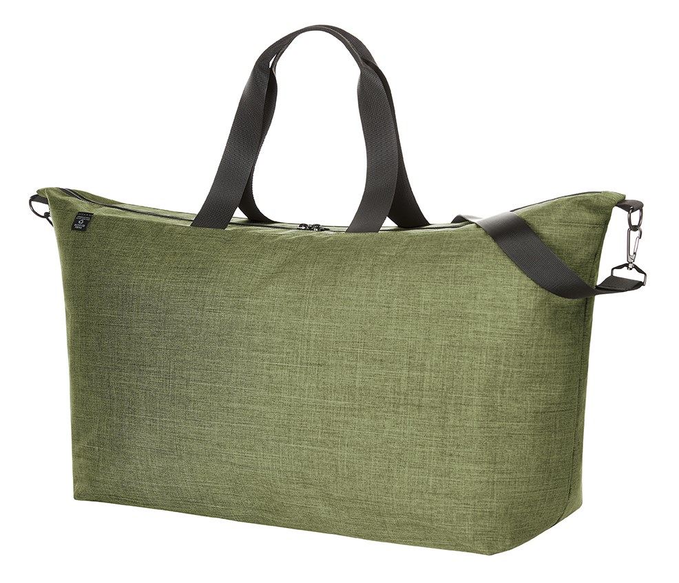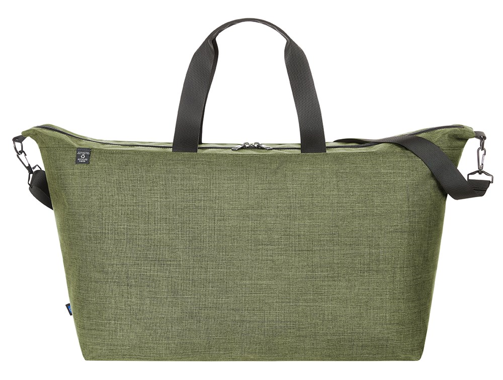 ruim hoofdvak met 2-wegritssluiting; vaste inlegbodem; rPET-buitenmateriaal; waardevolle, metalen accessoires: ruim, loshangende binnenvakje met ritssluiting; afneembare, in lengte verstelbare schouderriem; handgrepen