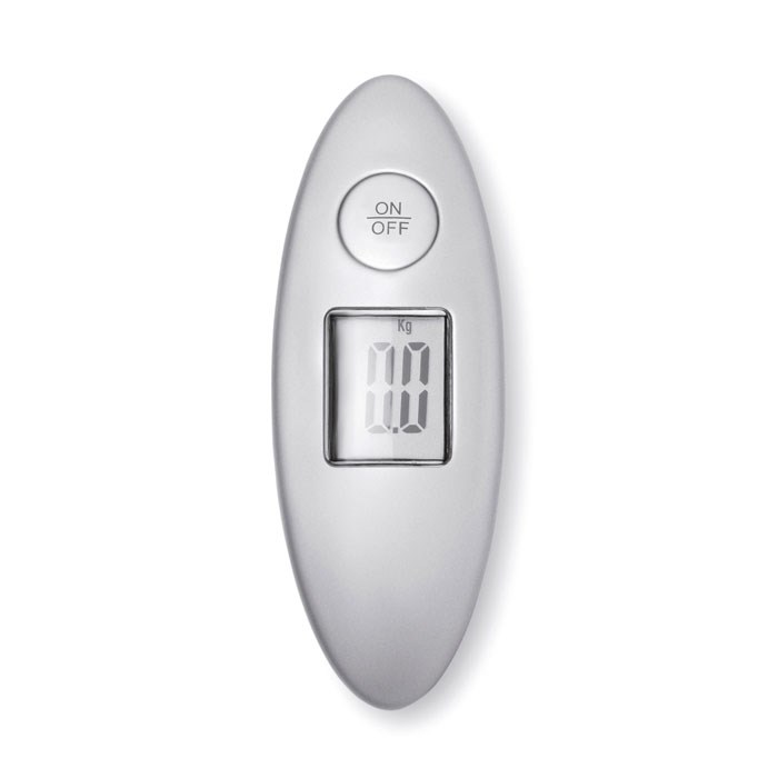 Bagage weegschaal in ABS behuizing. Maximale gewicht: 40 kg. Meet in kilogrammen en ponden. Inclusief 1 knoopcelbatterij. Individueel verpakt in een zilverkleurig kartonnen doosje.