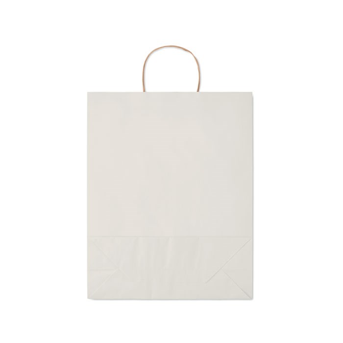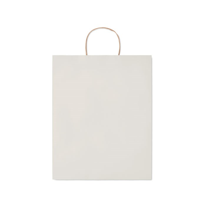 Grote papieren geschenktas. Een papieren zak is een geweldige manier om je cadeau in te presenteren. Het is ook handig om tijdens het winkelen spullen mee te dragen. 90 gr / m². FSC®-certified | FSC MIX, P5.3, FSC-C213206
