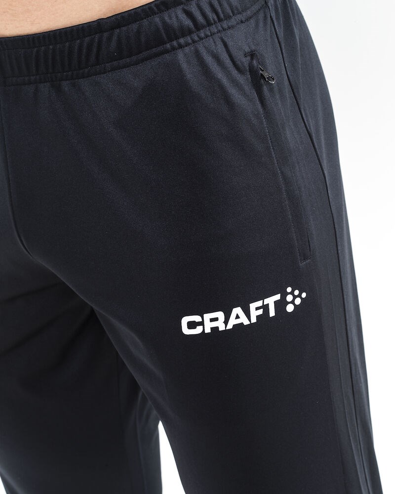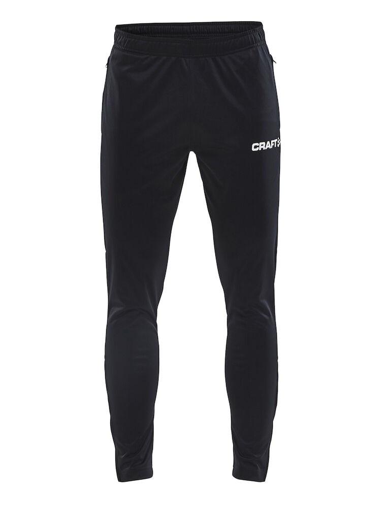Stretchy training pants made of functional fabric offering superior moisture transport for maximum performance. The pants come with a tight, tapering fit and zippers at leg endings. Zippered side pockets. Elastic waistband and draw cord.
