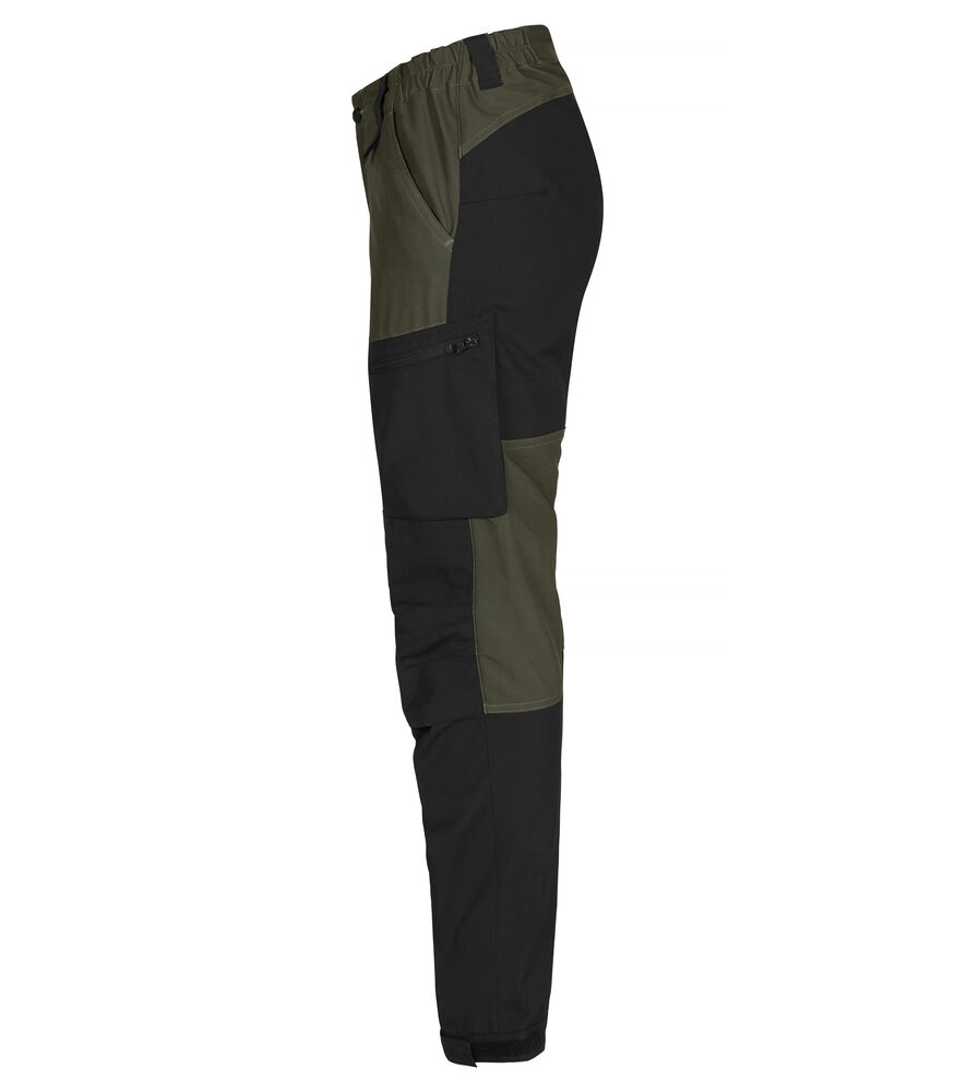 Een moderne trekking broek van een comfortabele en ventilerende 4-way stretch kwaliteit. Met delen van hoogwaardige wind- en waterafstotende stof. Afgewerkt met elastiek in de taille en een voorgevormde knie voor verbeterde mobiliteit. Twee voorzakken, twee beenzakken met rits en één achter. De onderzijde van de broekspijp is verstelbaar met elastiek en klittenband. Met ruimte voor het invoegen van kniebeschermers.