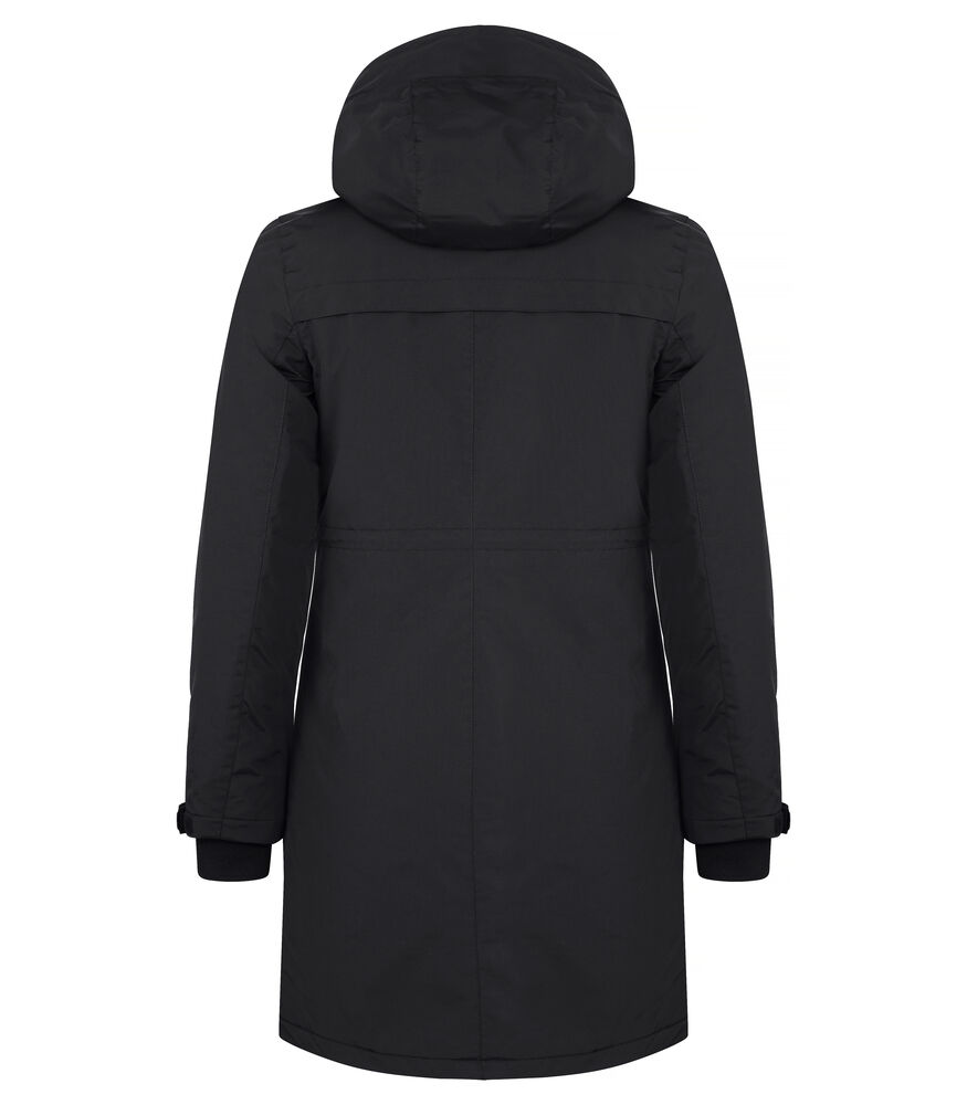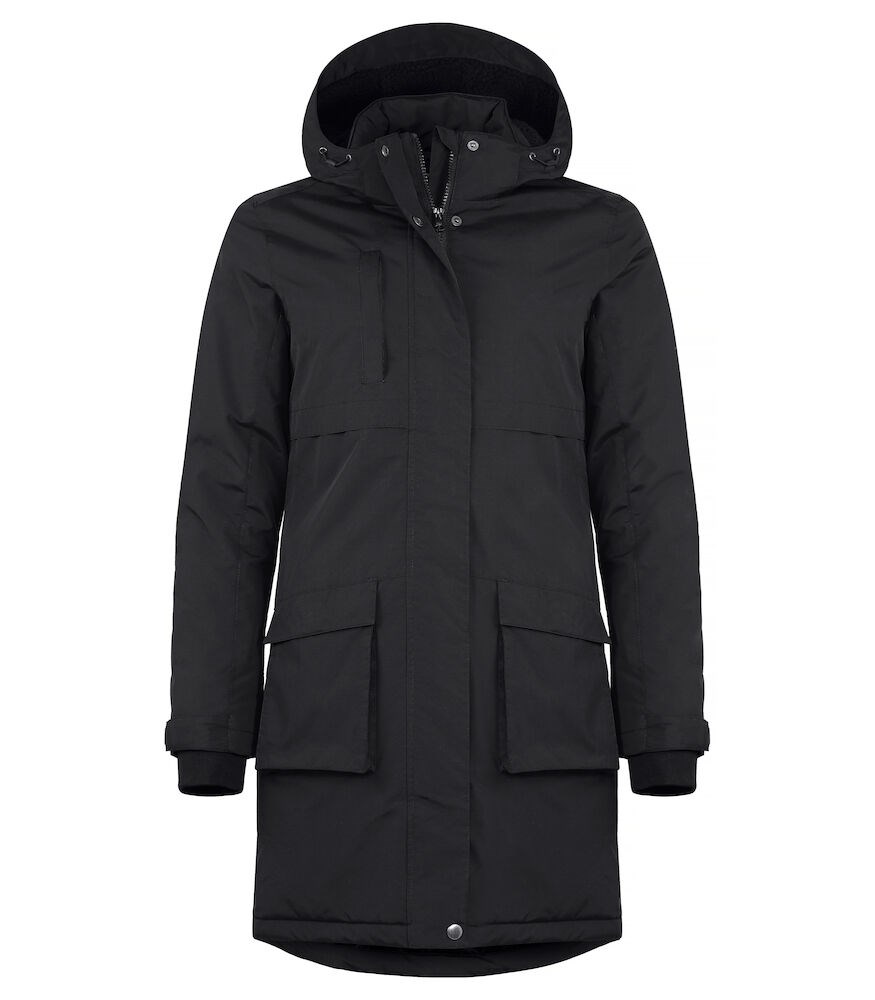 Een gewatteerde damesparka die bescherming biedt tegen wind en water. De parka is afgewerkt met een afneembare en verstelbare capuchon gevoerd met een zachte teddystof, een gewatteerde binnenkant en een trekkoord in de taille en zoom. De borstzak met ritssluiting, twee voorzakken met een magneetsluiting, twee binnenzakken met rits en twee mesh binnenzakken bieden voldoende opbergruimte. De manchetten zijn verstelbaar met klittenband en hebben een 2x2 rib in de mouw. De parka heeft een doorvoer voor een koptelefoon en is dankzij de borduurrits eenvoudig te veredelen. De stijl van deze parka sluit perfect aan bij de Creston of de Eskie.