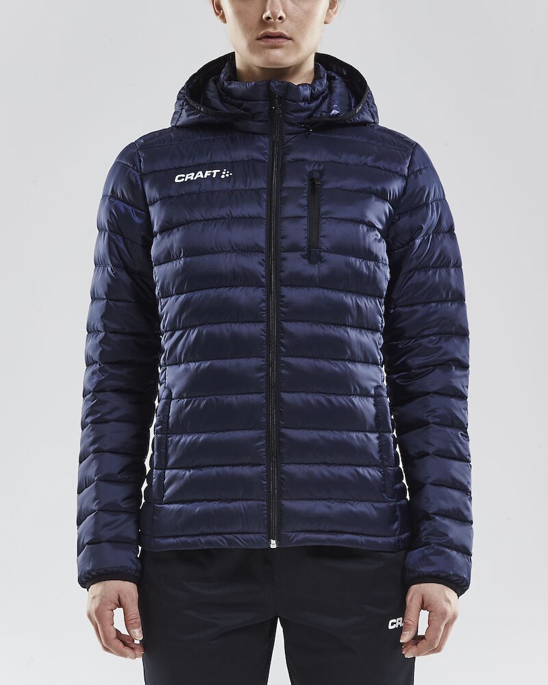 Padded, wind- and water-resistant jacket designed for warm-ups as well as more formal occasions. Features removable hood, zippered chest pocket and adjustable bottom hem. Padding made of microfiber with good thermal properties. Female fit.