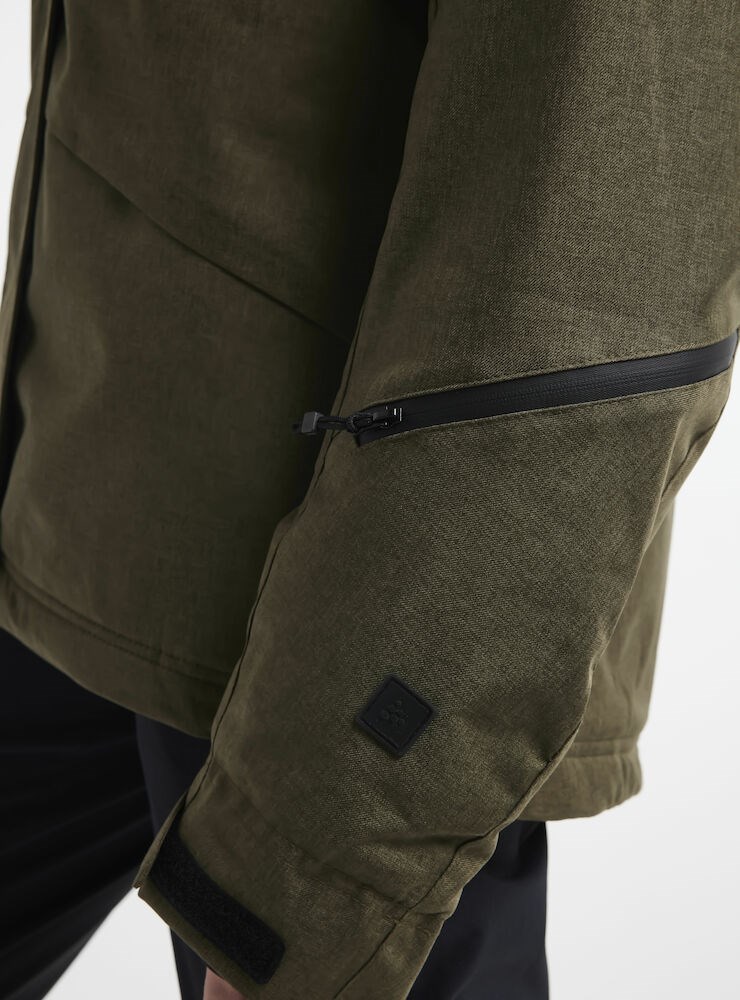 Contemporary padded jacket with high collar, detachable hood and snow gaiter. Blurring the lines between alpine attitudes and urban expressions, Mountain Padded Jacket feels just as home in the streets as in the backcountry. Soft, wind- and waterproof fabric combines with insulating padding to ensure great weather protection, warmth and comfort. Bonded details for a stylish appearance. Available in black mélange only. • Wind- and waterproof fabric (WP 10,000/MVP 10,000) • Bonded details for a stylish appearance • Two chest pockets (one zip, one Velcro) • Two pockets • Reflective piping at hood • Detachable hood and snow gaiter • Jersey cuff with thumbholes • Pre-shaped sleeves