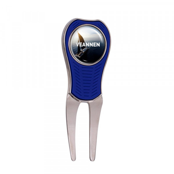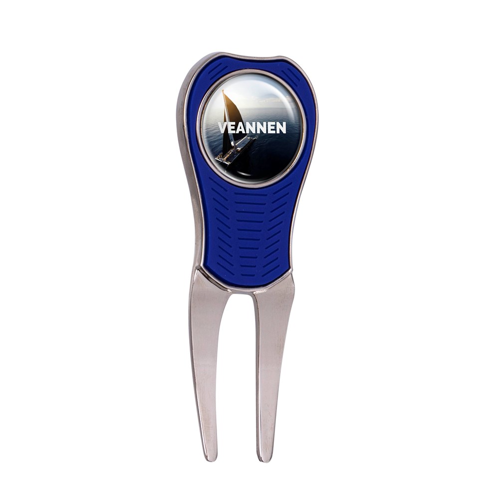 Metalen pitchfork met rubberen greep, voorzien van een magentische ball marker met doming